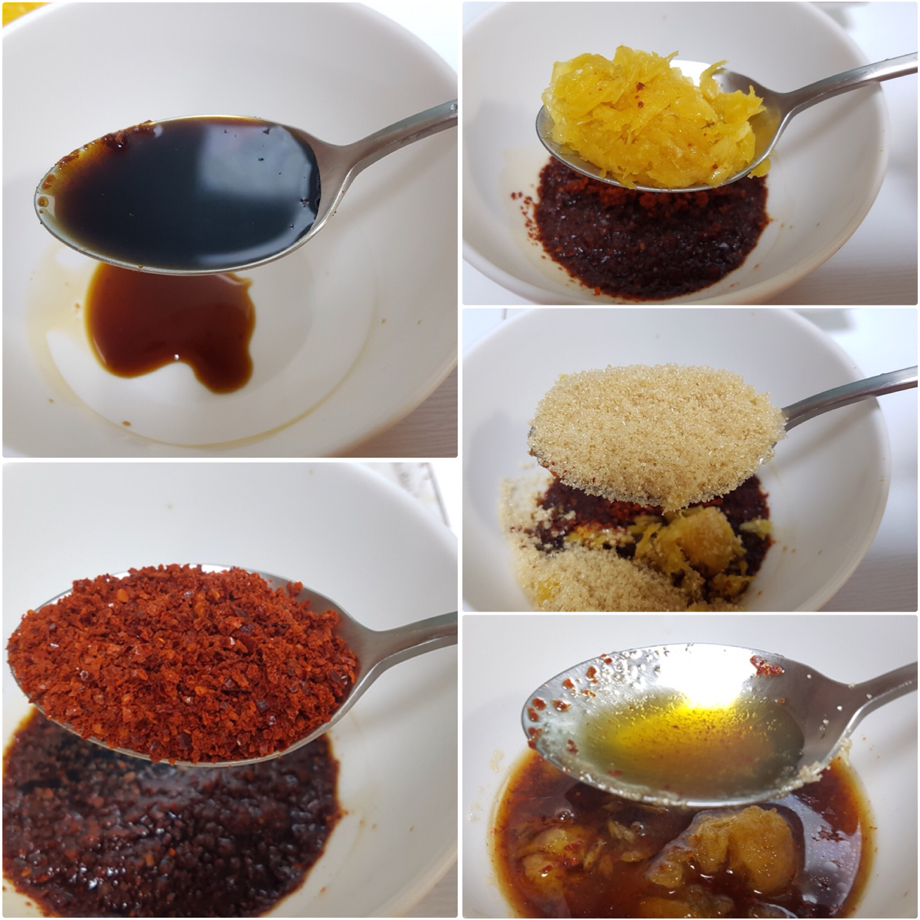 간장 5T, 고춧가루 2T, 설탕 3T, 다진 마늘 1T