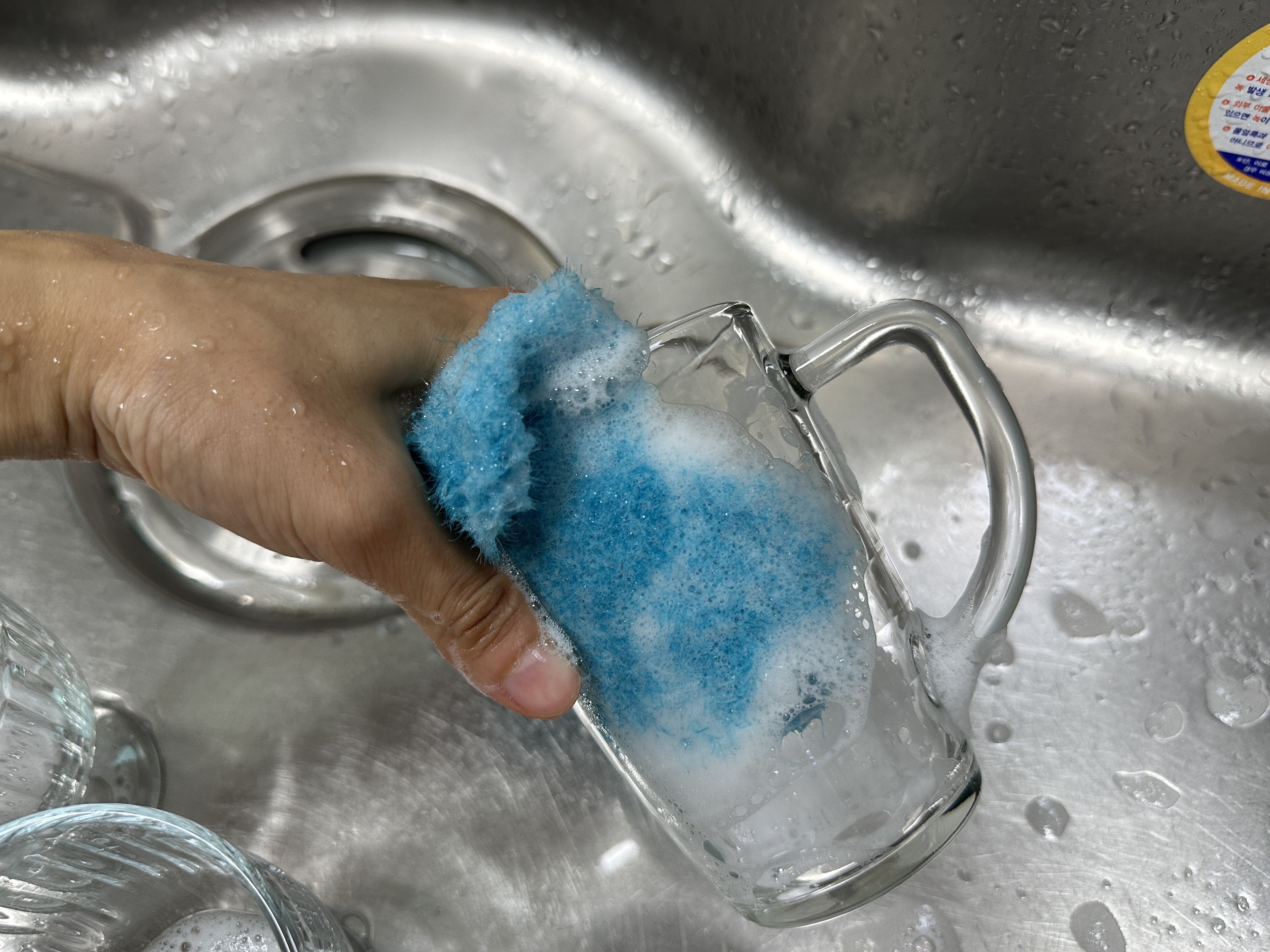 또는 마른행주를 사용해 수세미로