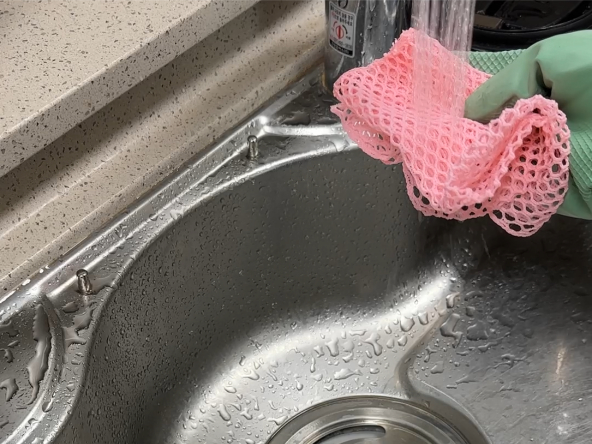 수세미로 닦는 게 포인트예요!